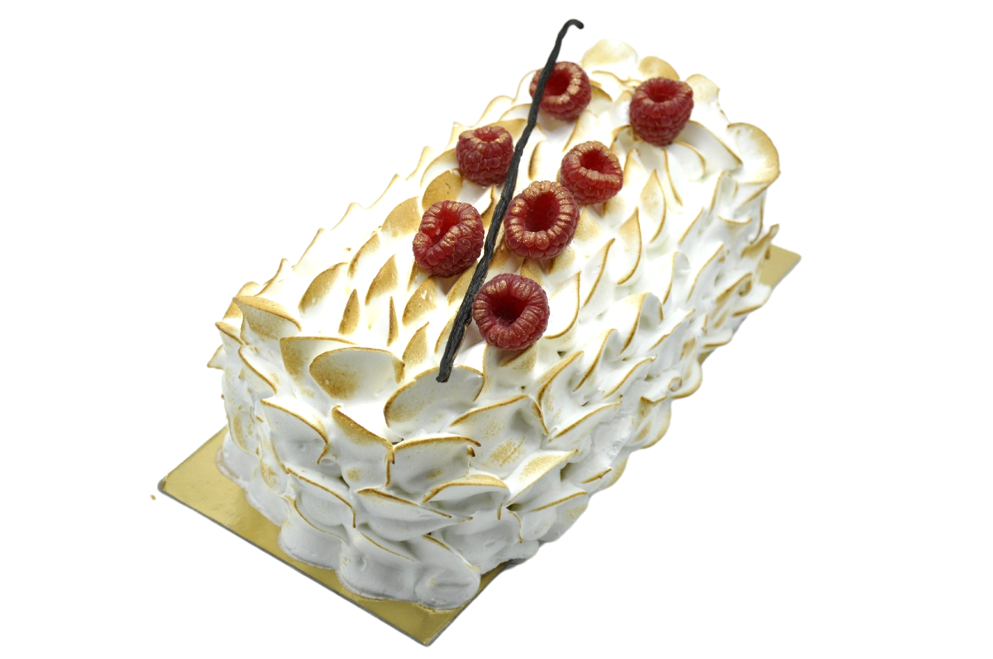 Un duo utra frais vanille - framboise, enrobé d'un biscuit chiffon moelleux et recouvert d'une meringue italienne légèrement dorée. Légère, gourmande et élégante pour les fêtes.